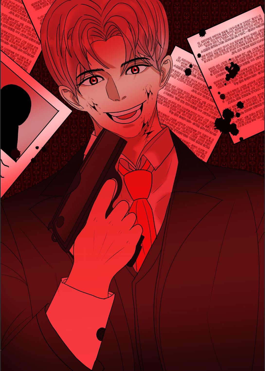 〈두 얼굴의 남자〉는 한 사람 안에 공존하는 내면의 이중성을 다룬 작품이다. 겉으로는 미소를 짓고 있지만, 그 뒤에 숨겨진 불안과 폭력적인 감정을 드러내고자 했다. 이를 표현하기 위해 강렬한 적색 조명과 극단적인 명암 대비를 사용하여 긴장감과 감정의 균열을 시각적으로 강조하였다. 총기와 흩날리는 문서는 통제 불가능한 선택의 순간을 상징하며, 인물이 마주한 극단적인 상황을 암시한다. 작품은 외면과 내면 사이의 간극을 바라보게 하며, 한 인간 안에 존재할 수 있는 복잡한 감정의 층위를 보여준다.