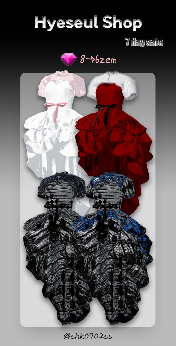 고딕 귀족 분위기의 뱀파이어 컨셉 드레스 컬렉션입니다. 강렬한 색감과 풍성한 실루엣으로 다크 판타지 매력을 표현했습니다. (제페토 의상입니다)