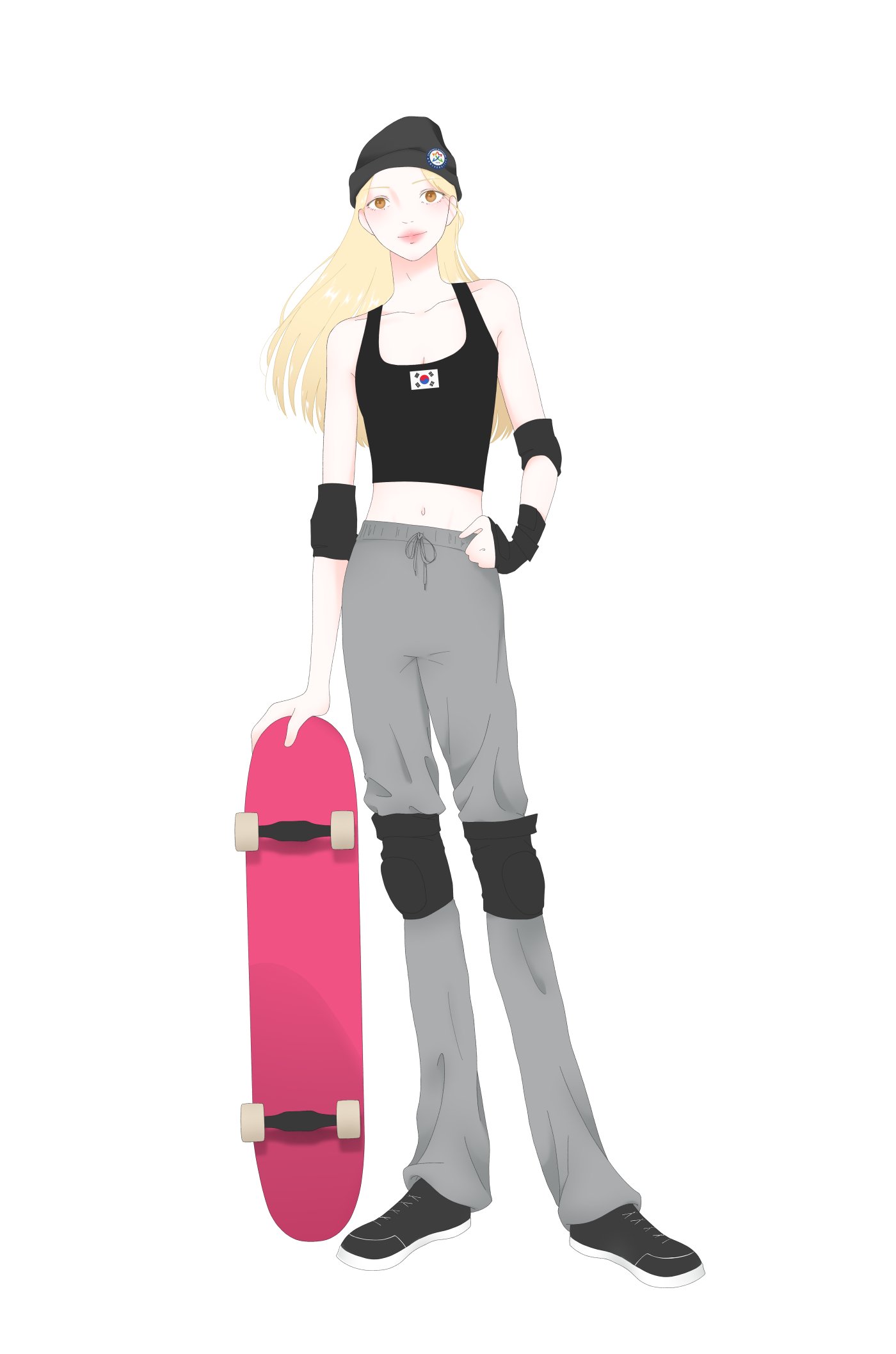 졸업 작품 전시용 웹툰 국가대표 캐릭터 일러스트입니다 (스케이트 보드 종목)