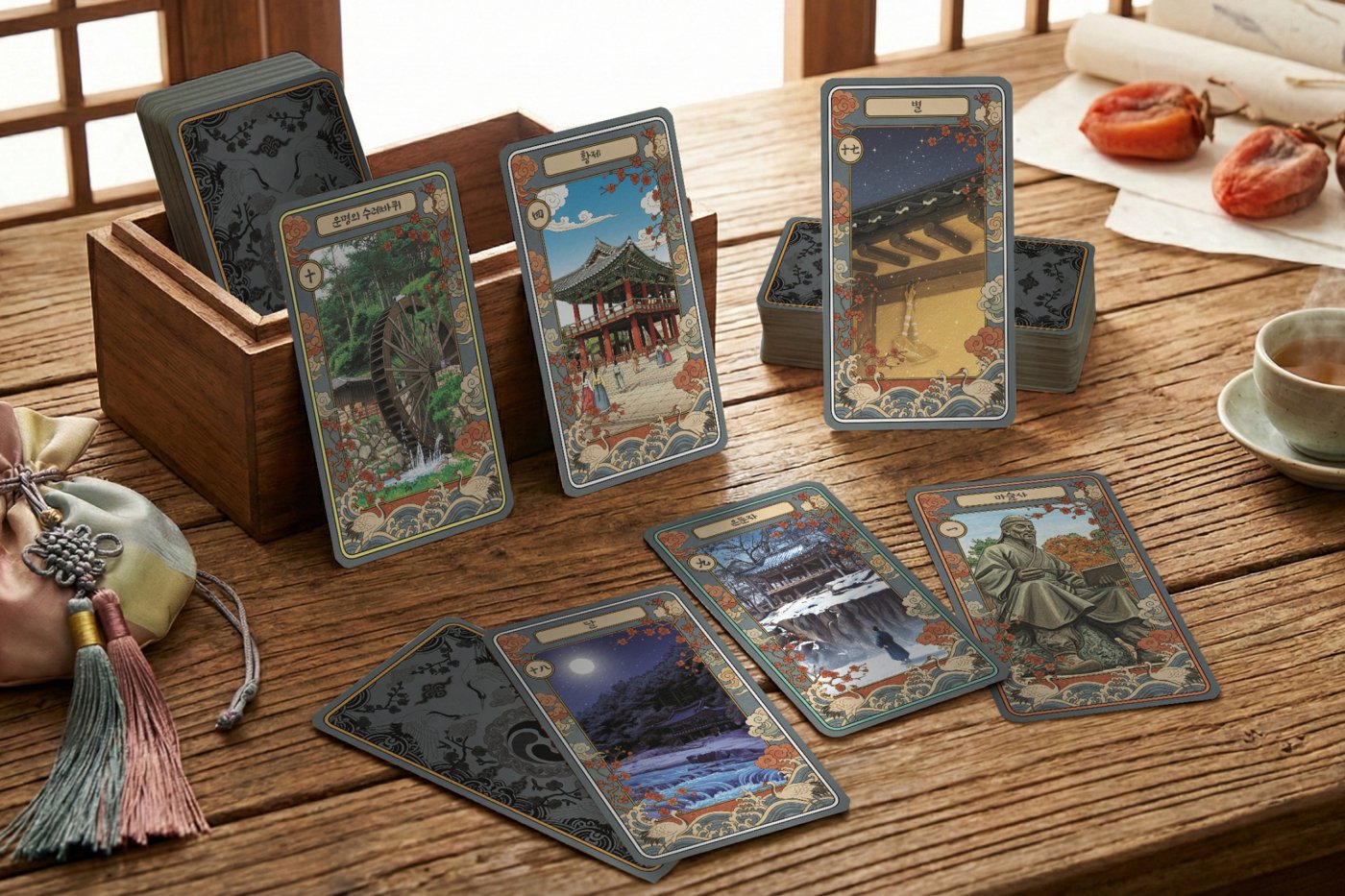 타로카드의 삽화 이미지는 실제 안의면에 방문하여 촬영한 명소 사진들을 기반으로