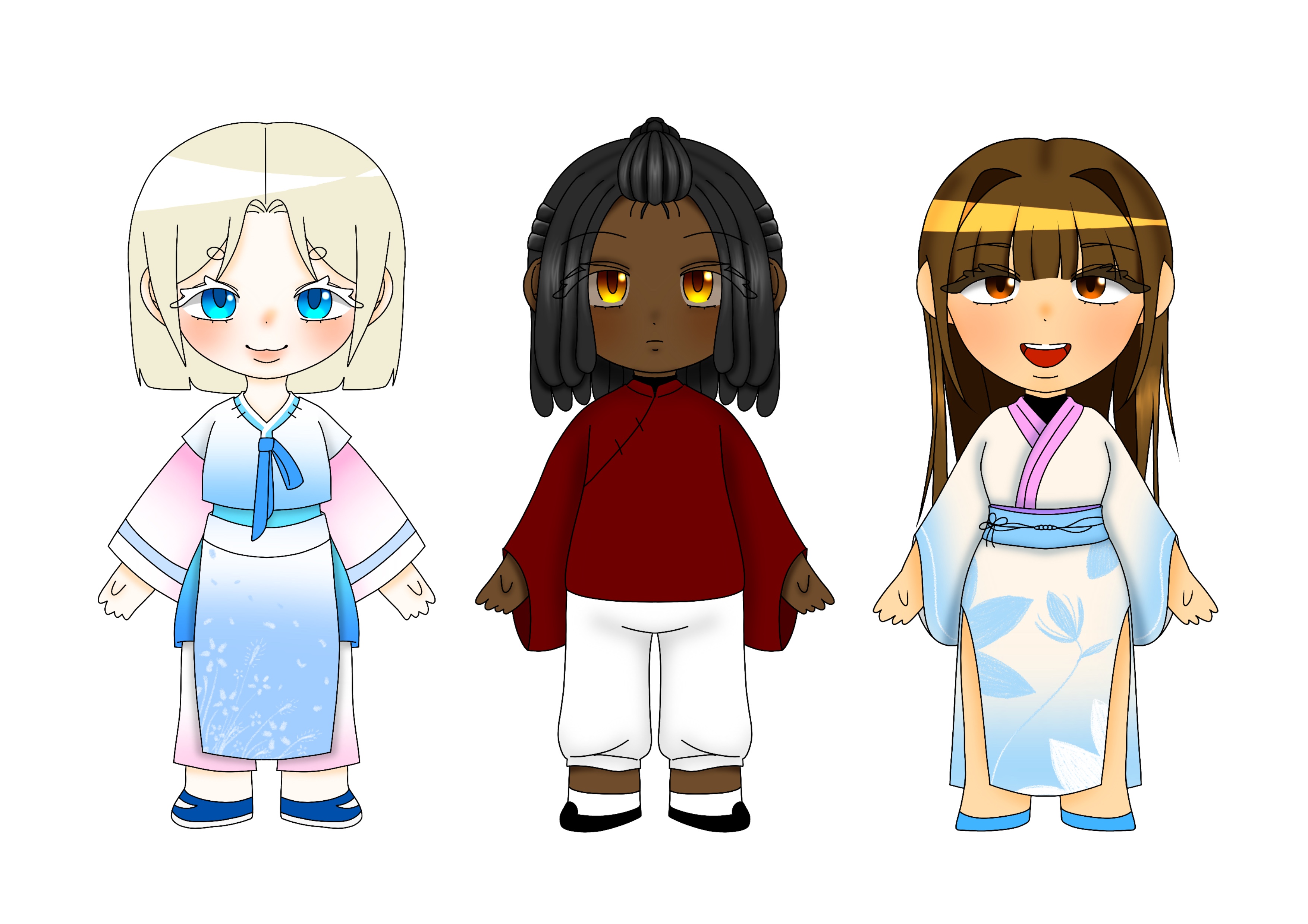 하랑이: 서양풍 외형의 여자아이로, 일본·한국·대만의 전통의상을 조합한 복장을 착용.