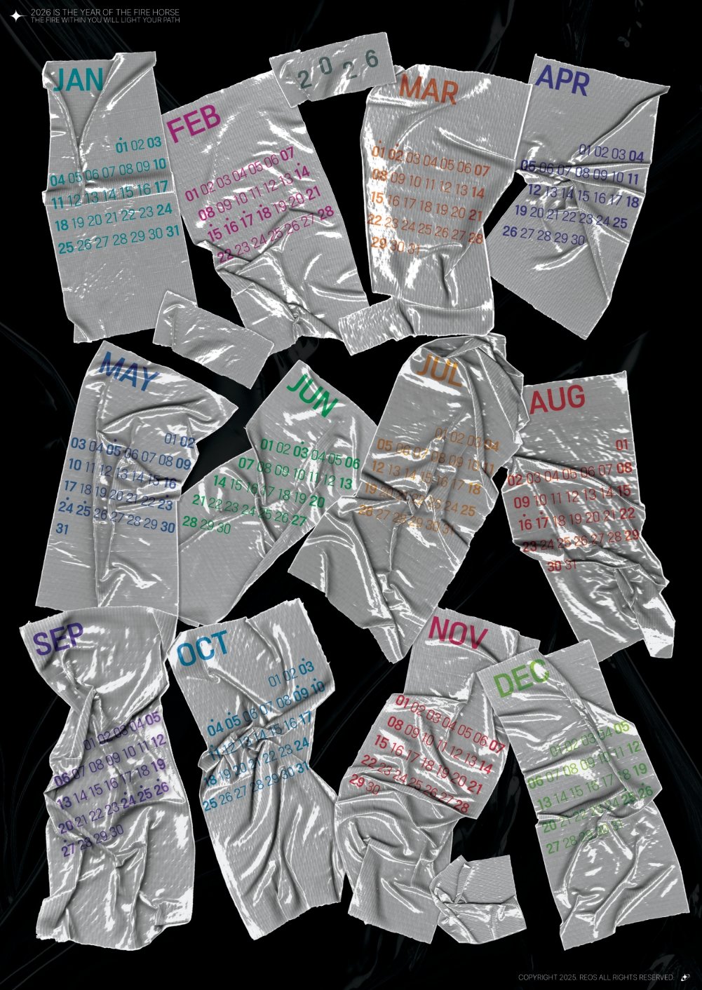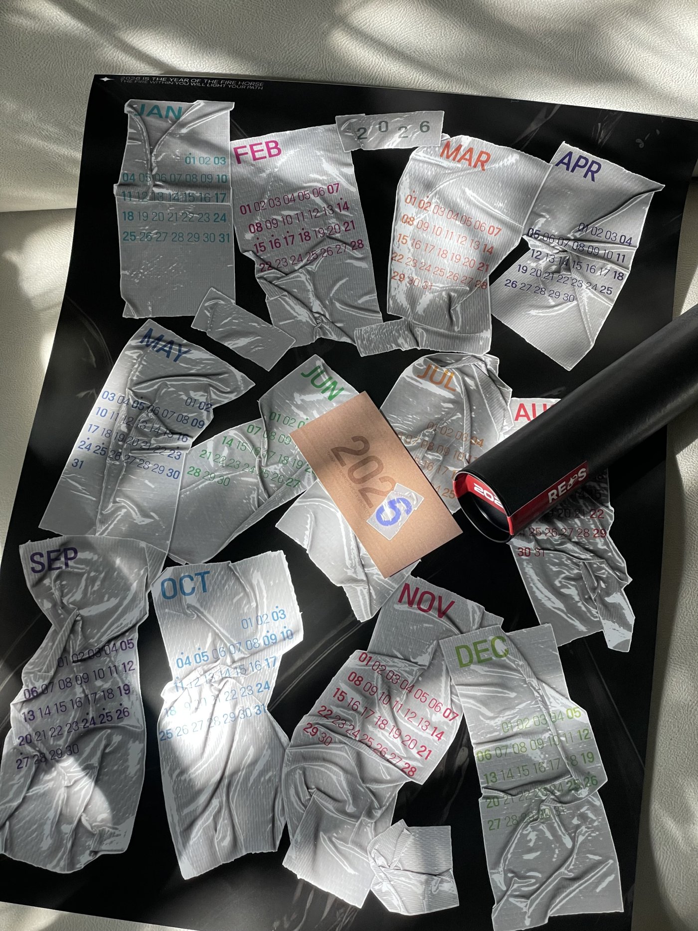 2026년 포스터 달력 2026 POSTER CALANDER 개인 프로젝트로 2026년 포스터 달력을 만들어 봤습니다. 덕테이프를 하나씩 붙여서 스캔하여 제작한 결과물입니다.